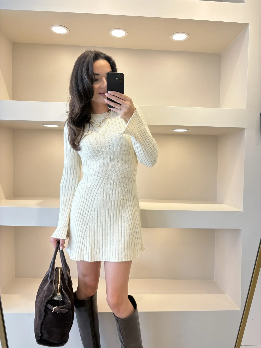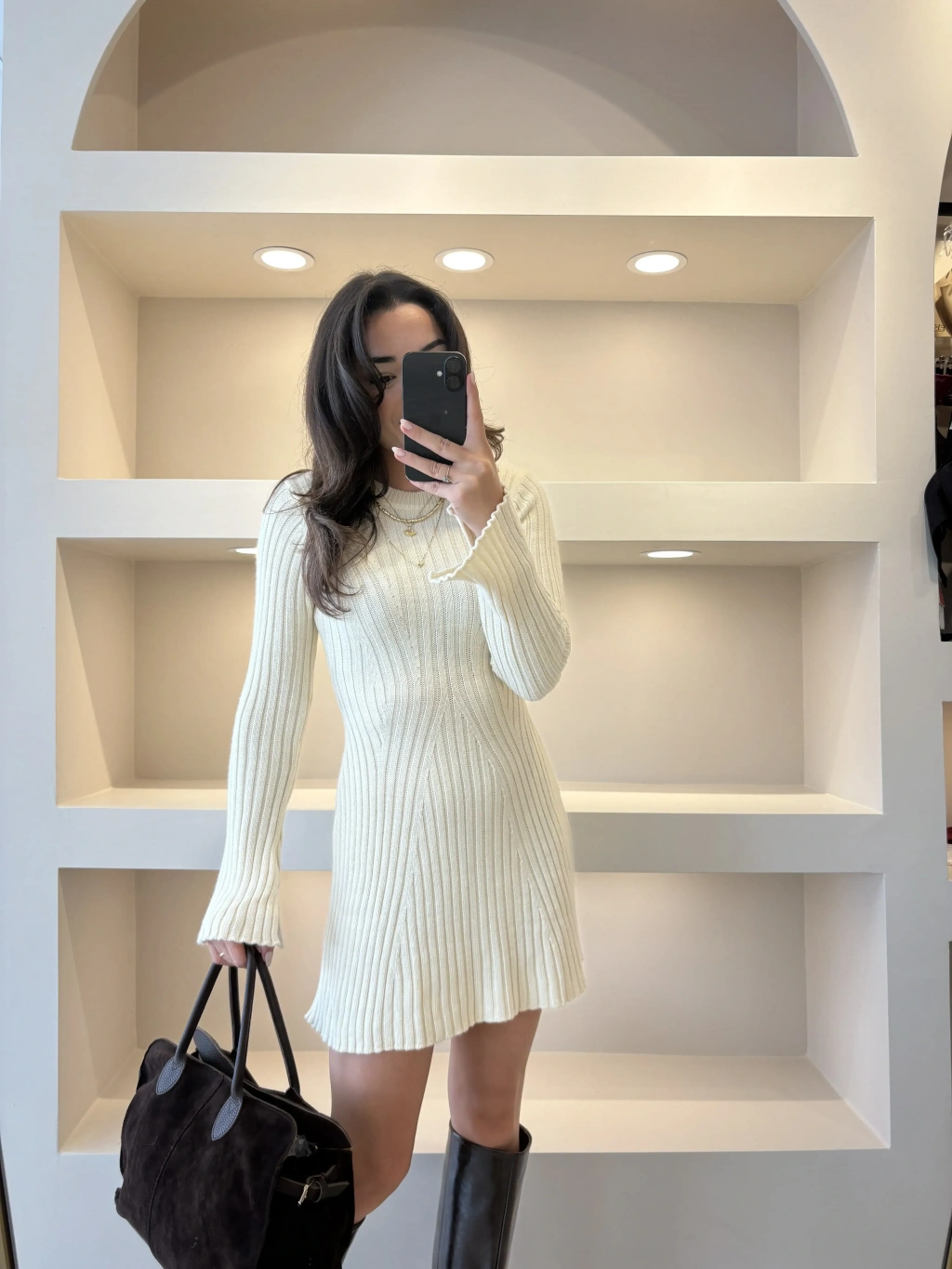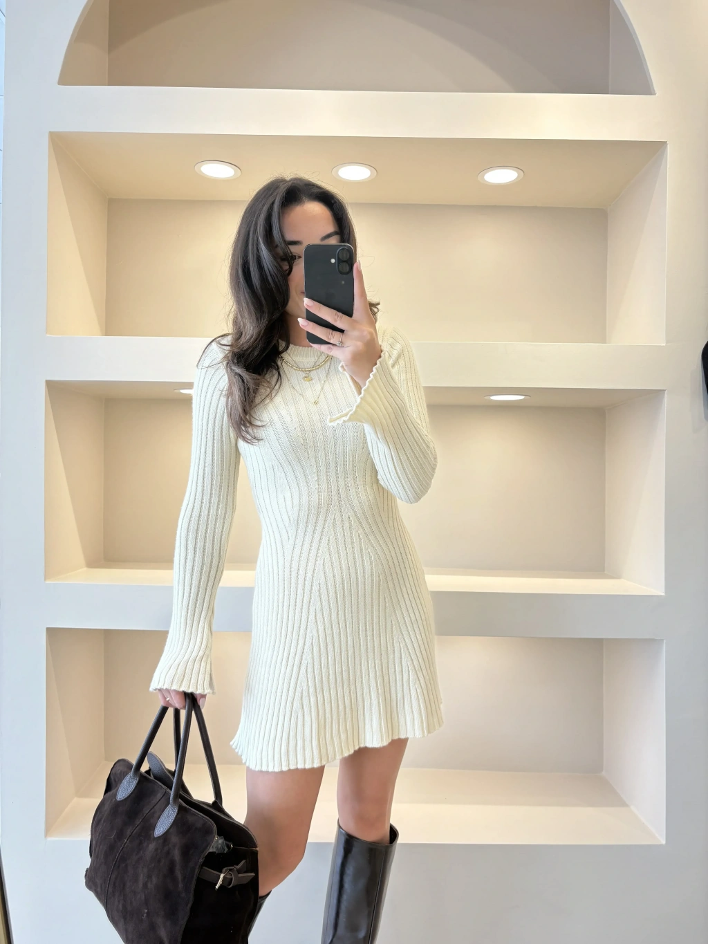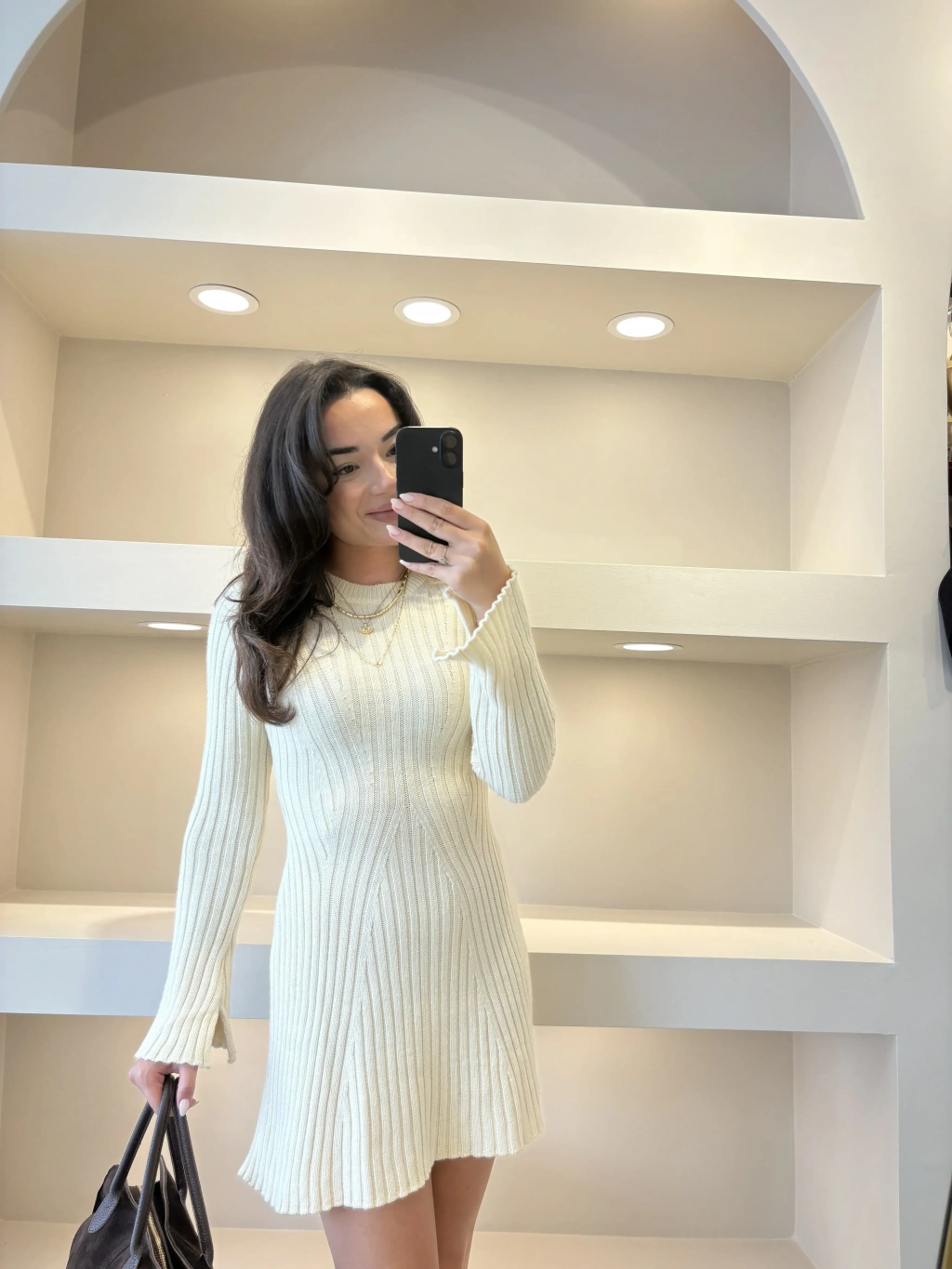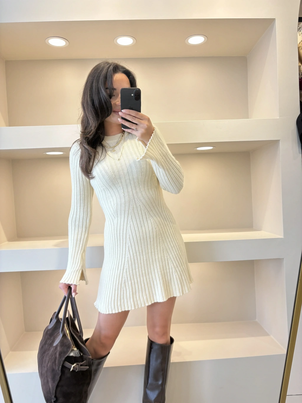 Ekru Fitilli Balıkçı Elbise Hırka Takım